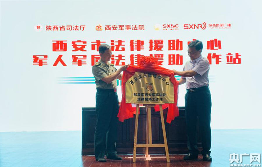 陜西省司法廳副廳長(zhǎng)李艾平、中國(guó)人民解放軍西安軍事法院院長(zhǎng)賈勝軍共同為“解放軍西安軍事法院法律援助工作站”揭牌并分別講話(huà)。