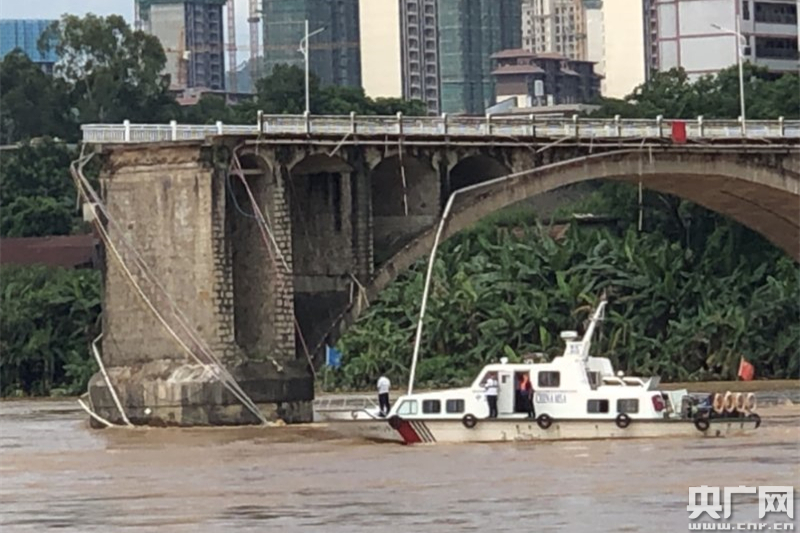 央廣網(wǎng)河源6月15日消息(記者周羽 通訊員陳德峰)6月14日02:30時,河源海事局值班室接到險情:市區(qū)東江河紫大橋中間兩孔坍塌,有2輛小汽車落水。