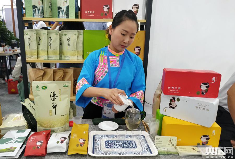 茶藝師劉蘭正在沖泡安順毛峰茶(央廣網(wǎng)記者 劉澤耕 攝)
