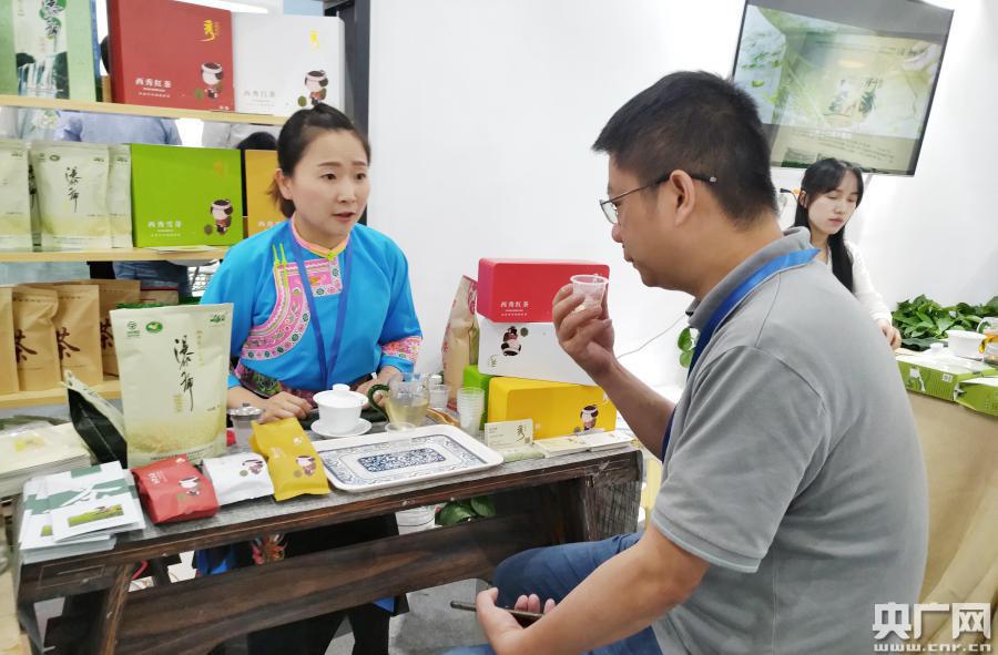 客人正在品鑒安順毛峰茶(央廣網(wǎng)記者 劉澤耕 攝)
