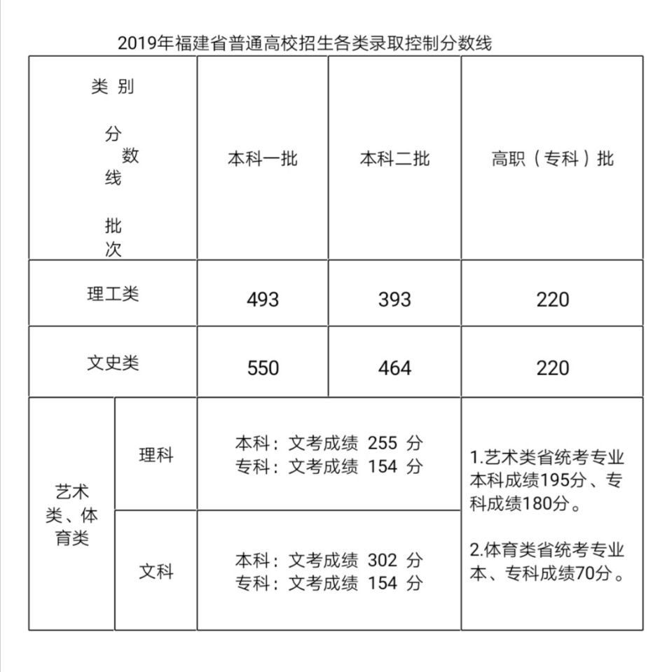 今天上午,福建省高等學(xué)校招生委員會(huì)召開2019年第二次全體會(huì)議,研究確定今年福建省高考切線方案,部署高招錄取工作。經(jīng)會(huì)議研究決定,2019年福建省普通高校招生各科類各批次錄取控制分?jǐn)?shù)線:本科一批理工類493分、文史類550分;本科二批理工類393分、文史類464分。