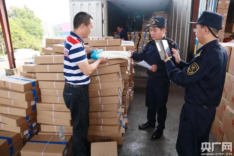 汕頭港海關(guān)關(guān)員查驗進口凍魷魚。(央廣網(wǎng)發(fā) 黎逸穎攝)