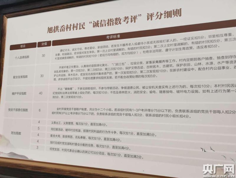 旭拱岙村的誠(chéng)信指數(shù)考評(píng)標(biāo)準(zhǔn)(央廣網(wǎng)記者 曹美麗 攝)