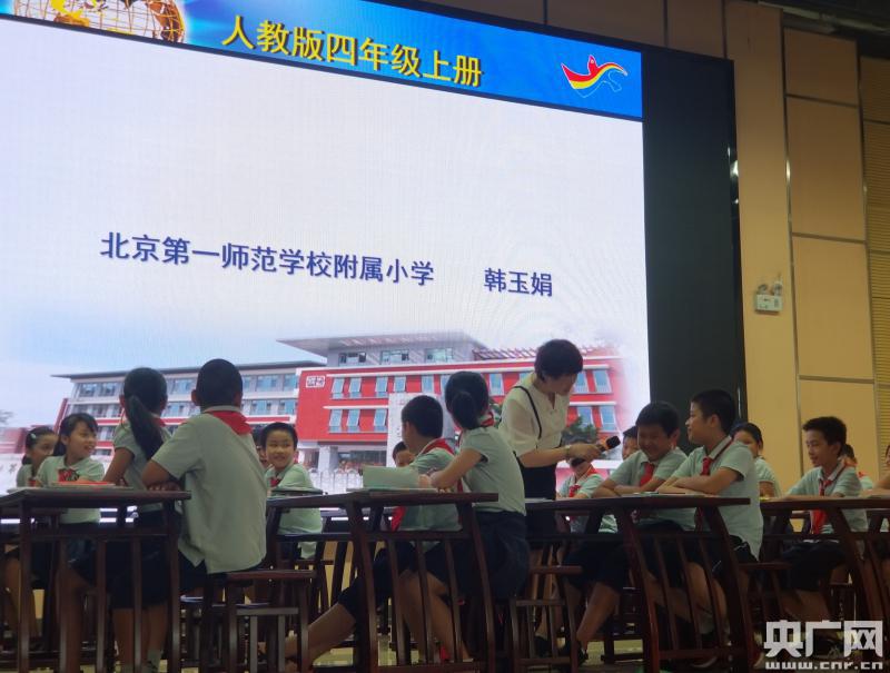 北京市特級(jí)教師、北京一師附小副校長(zhǎng)韓玉娟在佛山新城一小上示范課。(央廣網(wǎng)發(fā) 主辦方供圖)