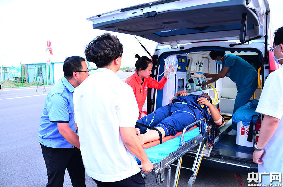 患者已被順利送上120救護(hù)車(央廣網(wǎng)發(fā) 通訊員張菲菲 攝)