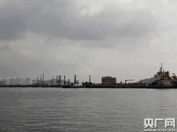 失控船“常豐油12”輪在四艘拖輪拖帶、海事執(zhí)法船全程護(hù)航下起錨進(jìn)港。(圖片由惠州海事局提供)