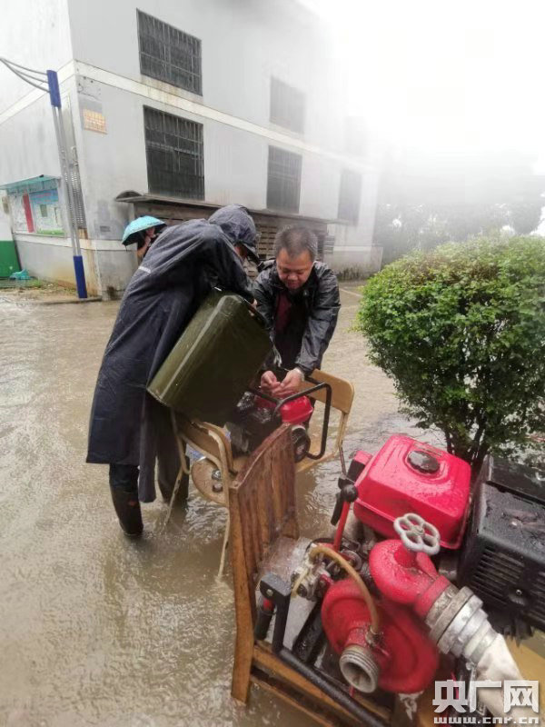 寧波市江北區(qū)聯(lián)村干部對(duì)河西村梅龍小區(qū)進(jìn)行排水 (央廣網(wǎng)發(fā) 王枷喻攝)