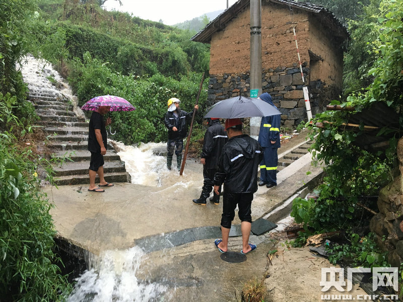 寧波市寧?h的村干部在冒雨清淤 (央廣網(wǎng)發(fā) 寧海縣委宣傳部供圖)
