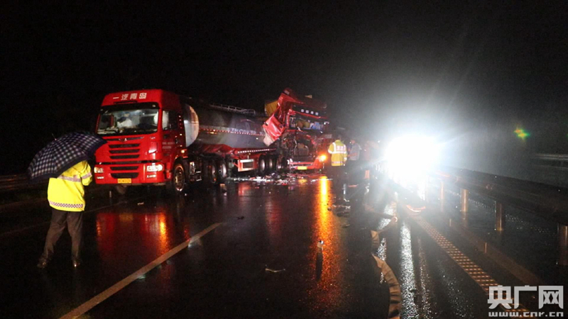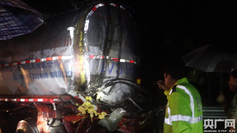 央廣網(wǎng)日照8月11日消息(記者劉華棟 柴安東 劉穎超 劉?┦芙衲甑9號(hào)臺(tái)風(fēng)“利奇馬”影響,8月10日夜間,山東省日照市五蓮縣境內(nèi)普降大雨。8月11日0點(diǎn)20分,在222省道日照市五蓮縣許孟鎮(zhèn)路段發(fā)生一起;奋囕v追尾事故,裝載29噸的甲醇罐車罐體破損,導(dǎo)致甲醇泄露。五蓮縣消防大隊(duì)立即出動(dòng)救援力量趕赴現(xiàn)場(chǎng)處置。消防人員到達(dá)現(xiàn)場(chǎng)后,發(fā)現(xiàn)后方貨車車頭緊貼前方甲醇罐車罐體尾部,罐體被撞開一個(gè)大口子,但是甲醇已經(jīng)泄露完畢,現(xiàn)場(chǎng)散發(fā)著十分刺鼻嗆人的氣味。消防人員在現(xiàn)場(chǎng)經(jīng)詢問了解到,事故發(fā)生的原因是由于貨車司機(jī)疲勞駕駛,加之雨天視線不好,路面濕滑,司機(jī)剎不住車,導(dǎo)致貨車撞上停在路邊的甲醇罐車。
