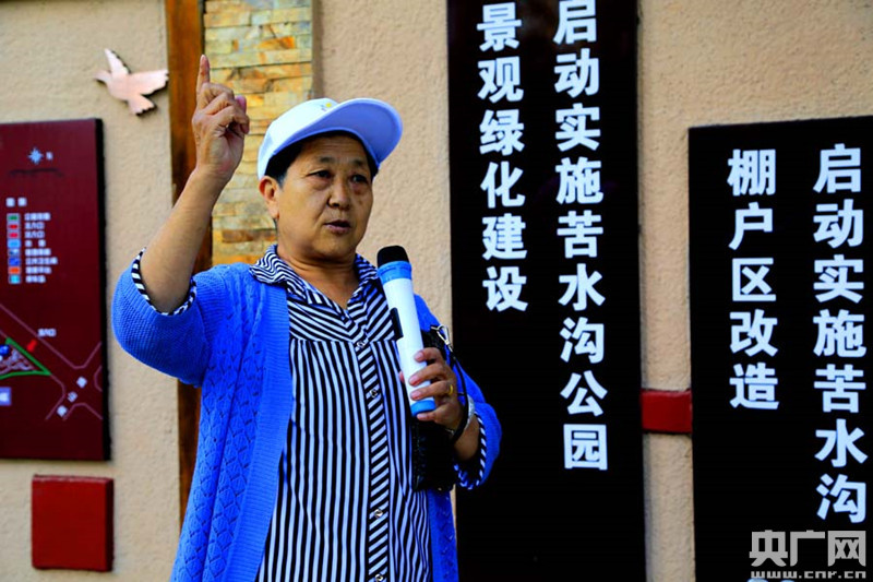 原大園山居委會(huì)主任杜曉紅向大家講述苦水溝歷史變遷(央廣網(wǎng)記者 張雷 攝)