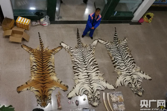 查獲的虎皮及象牙(央廣網(wǎng)發(fā) 廣西公安廳供圖)