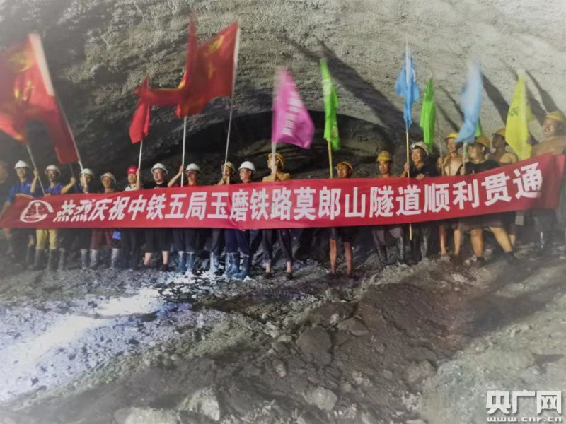 中老昆萬鐵路莫郎山隧道順利貫通(央廣網(wǎng)發(fā) 何增旺 攝)