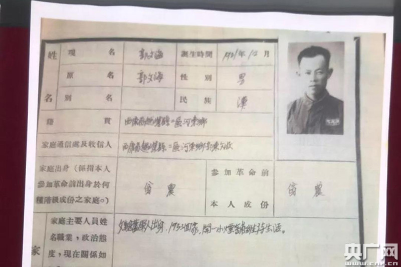 郭文海的干部履歷表(央廣網發(fā) 虎俊隆提供)