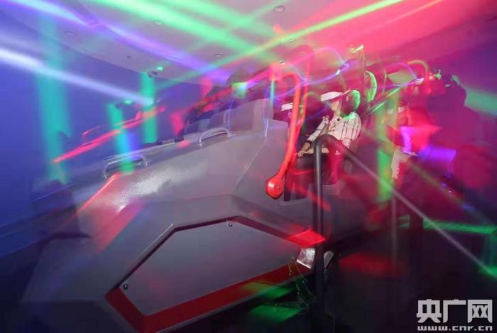 VR騎乘配有8個(gè)座位,市民可以體驗(yàn)“過(guò)山車”一般從海河到深海再入太空的視覺(jué)體驗(yàn)(央廣網(wǎng)發(fā) 賈成龍 攝)