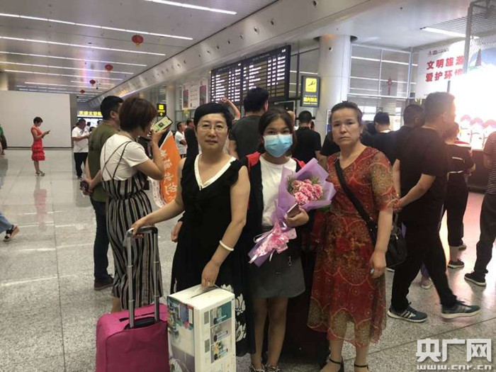 黃秋菊前往機場迎接治病歸來的熱依漢古麗(央廣網(wǎng)發(fā) 通訊員供圖)