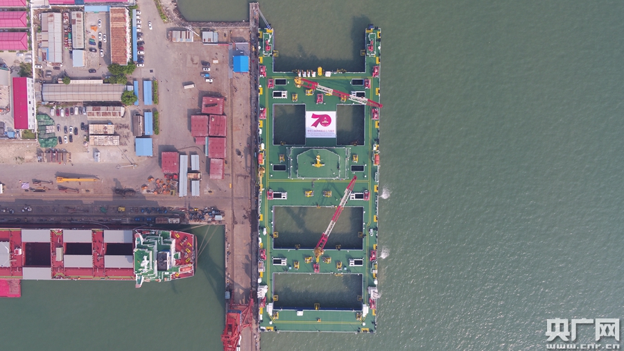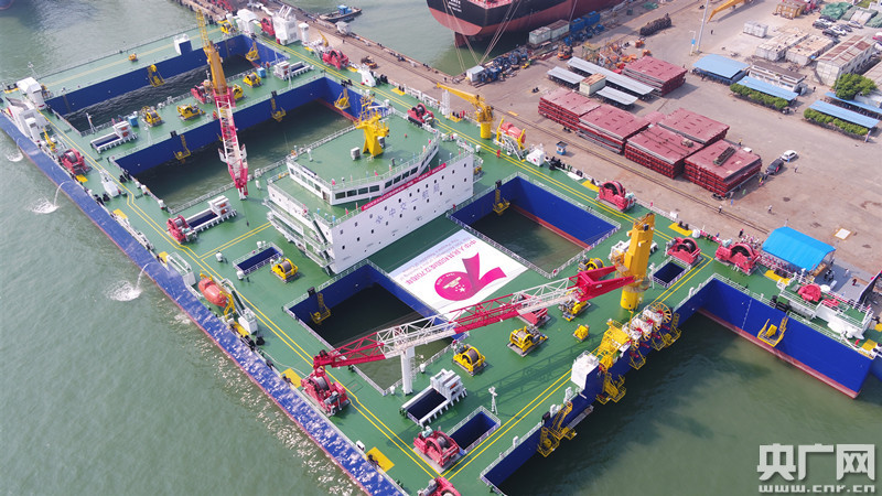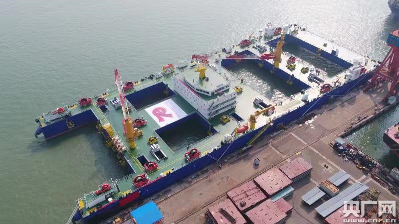 世界首制沉管隧道浮運(yùn)安裝一體船26日順利交船(央廣網(wǎng)發(fā) 通訊員供圖)