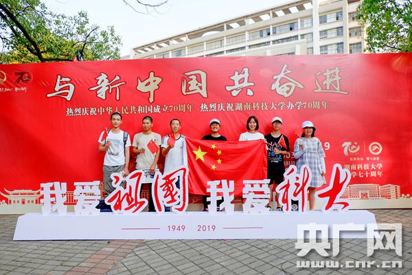湖南科大學生與國旗合照 為新中國慶生(央廣網(wǎng)發(fā) 盧權(quán)隆 董思良供圖)