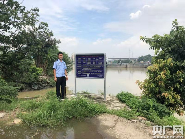 白云區(qū)河道警長在巡河查看水質(zhì)(央廣網(wǎng)發(fā) 圖片由通訊員提供)