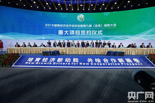 央廣網益陽10月29日消息(記者鄧文輝)今天(29日)上午,2019湖南經濟合作洽談會暨第九屆(全球)湘商大會在湖南益陽開幕。包括35家世界500強、中國500強、中國民營500強在內的共計1000余家知名企業(yè),255家全球湖南商會,銀行、證券、保險等金融機構,高校、科研機構,湖南省內民營企業(yè)家代表以及兄弟省區(qū)市代表團匯聚一堂,同敘鄉(xiāng)情、共享機遇,共簽署各類投資合同、協(xié)議項目237個,項目總投資為1660.72億元,引進資金1633.18億元。