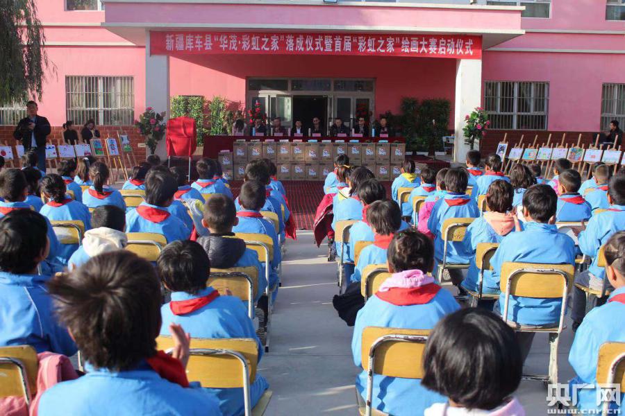 央廣網(wǎng)寧波11月11日消息(記者曹美麗 通訊員李佳赟)從浙江到新疆,從江南疏雨到天山戈壁,相隔千里,卻因一道“彩虹橋”而“天涯若比鄰”。經(jīng)過170余個小時、4000多公里的跋涉,11月10日,第十所華茂“彩虹之家”在新疆庫車縣烏尊色根蘇蓋特小學揭牌落成。此次揭牌,可以說是古老的“陸上絲綢之路”與“海上絲綢之路”的溫暖“邂逅”。