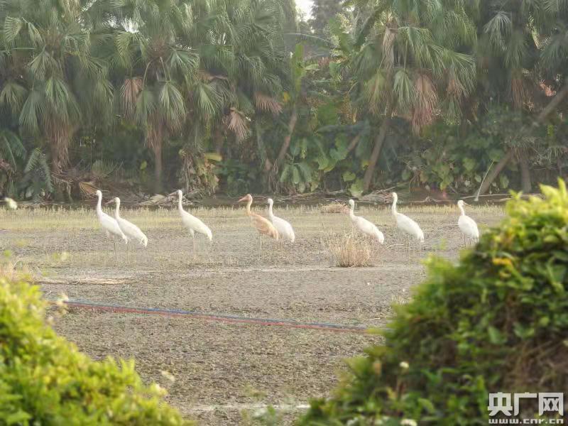央廣網(wǎng)廣州12月16日消息(記者鄭澍 通訊員林蔭)記者從廣東省林業(yè)局獲悉,近日,群眾反映有以前沒(méi)有見(jiàn)過(guò)的候鳥(niǎo)來(lái)到了廣東省江門(mén)市新會(huì)區(qū)三江鎮(zhèn)沙仔場(chǎng)社區(qū)。經(jīng)廣東省林業(yè)局組織的專家現(xiàn)場(chǎng)核查,確認(rèn)該區(qū)域的9只候鳥(niǎo)為國(guó)家一級(jí)保護(hù)野生動(dòng)物白鶴。