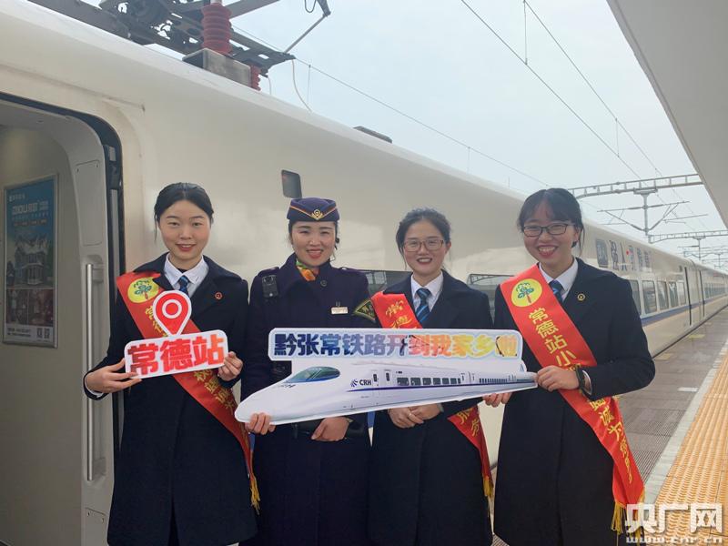 黔張常鐵路開(kāi)通運(yùn)營(yíng)后首趟列車開(kāi)行至常德站(央廣網(wǎng)發(fā) 通訊員 李悅 靖如潔供圖)