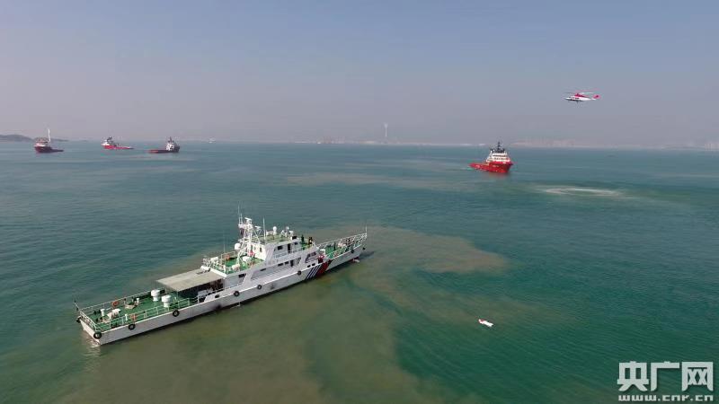 廣東海事局正在進(jìn)行水上防污染應(yīng)急演練。(央廣網(wǎng)發(fā) 海事局供圖)