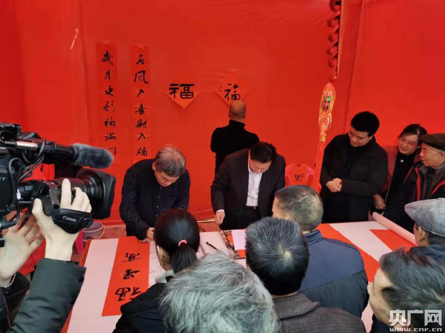 書寫春聯(lián)(央廣網(wǎng)記者 鄧文輝 攝)