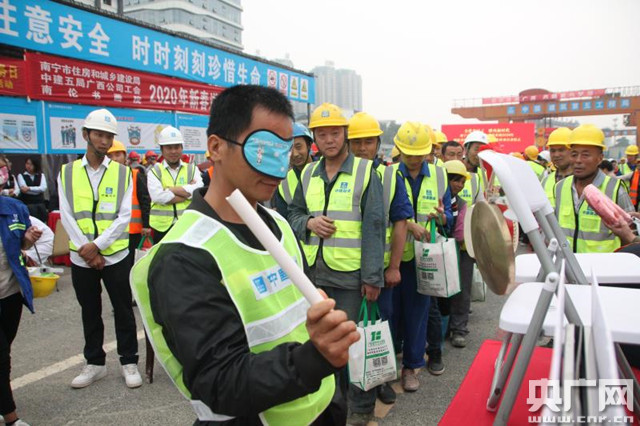 工人師傅在參加新春游園活動(dòng)(央廣網(wǎng)發(fā) 照片由中建五局廣西公司提供)