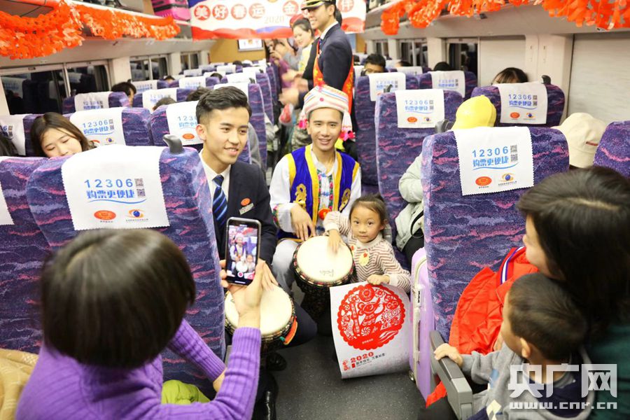 2020年春運(yùn)于1月10日正式開始,截至2月18日,為期40天,在40天的時(shí)間里,昆明局集團(tuán)預(yù)計(jì)將為970萬人次的旅客出行服務(wù)。為給旅客出行營造溫馨氛圍,自2014年起,每年春運(yùn)昆明局集團(tuán)都會結(jié)合鐵路工作主題和形勢任務(wù),開展主題服務(wù)活動。今年春運(yùn),昆明局集團(tuán)仍以“美好春運(yùn)金花相伴”為主題開展春運(yùn)服務(wù)活動,結(jié)合站車環(huán)境及設(shè)備設(shè)施條件,用窗花、年畫、條幅、彩帶、中國結(jié)等節(jié)慶用品,對車站售票廳、候車室、旅客車廂、餐車等進(jìn)行節(jié)日裝飾。除夕夜還會在部分列車上以送餃子、猜謎語、文藝表演等形式,與旅客開展聯(lián)歡活動,讓旅客在出行中獲得溫馨舒適的良好感受。