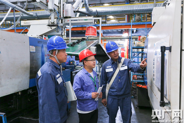 南方電網廣東中山供電局工作人員到美的環(huán)境電器有限公司了解生產情況。(央廣網發(fā) 馬婷 攝)