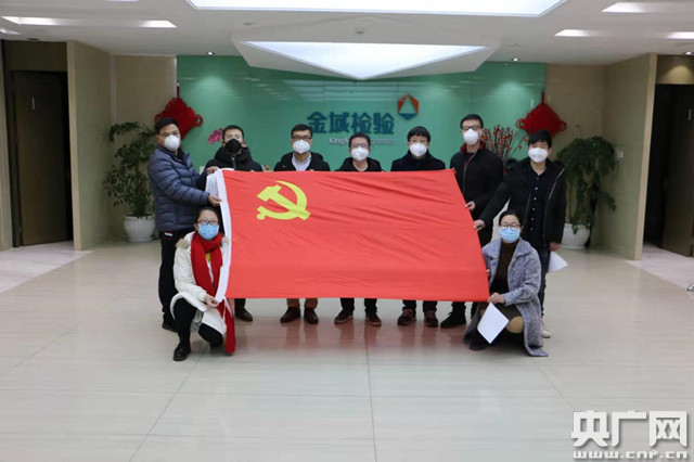 金域醫(yī)學(xué)正式成立抗擊新型冠狀病毒肺炎武漢先鋒隊臨時黨支部(央廣網(wǎng)發(fā) 黃浦區(qū)供圖)