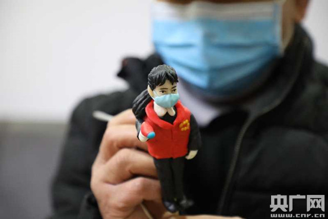 非遺傳承人創(chuàng)作“抗疫面人”(央廣網(wǎng)發(fā) 通訊員陳毅 攝)