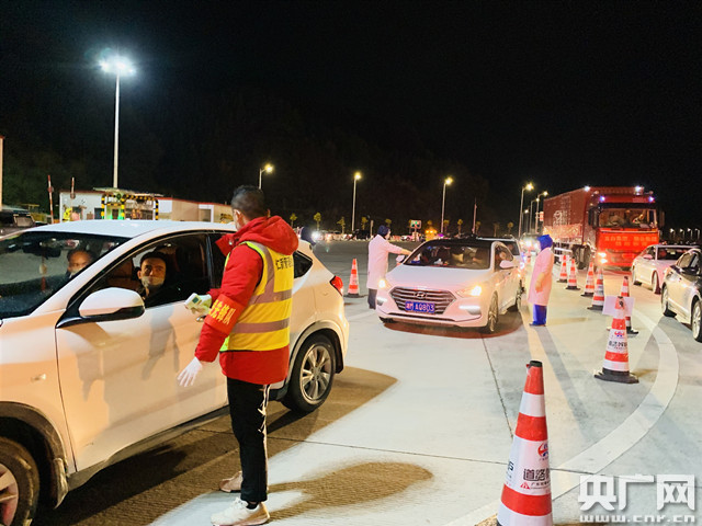 2月8日晚,高速公路免費通行即將結束,武深高速車流量開始上升,城口檢查點同時開啟的6條車道,檢疫人員面臨超負荷運轉。