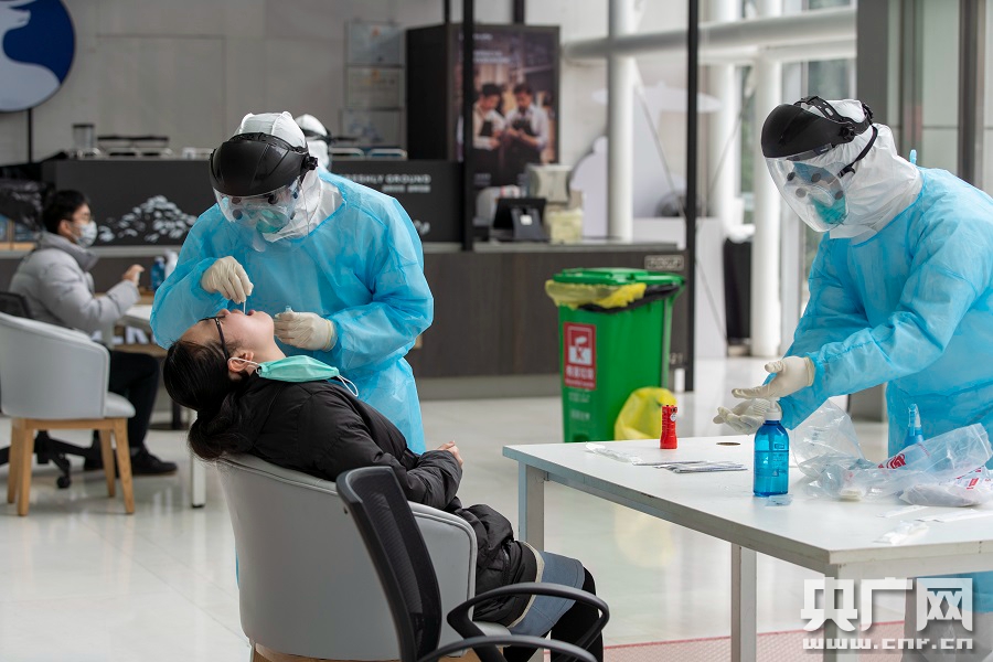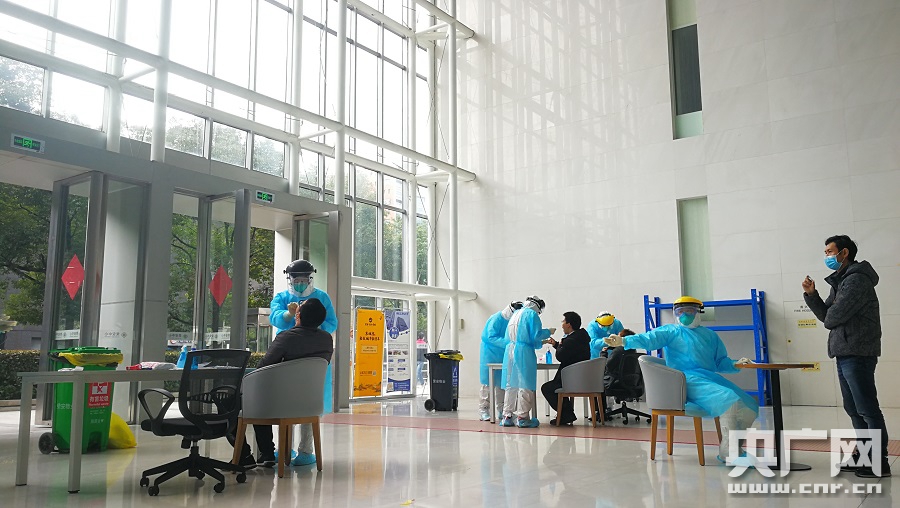 寧波一家地產(chǎn)公司的員工正在做核酸檢測(央廣網(wǎng)記者 杜金明 攝)