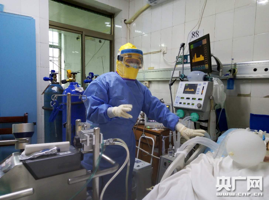 擔任重癥患者的主管醫(yī)生后,劉嬌艷2月15下午五點,接到醫(yī)院通知,又有一個病情危重的病人需要劉嬌艷主管救治,晚上10點多,本應(yīng)該休息的劉嬌艷還是放心不下,穿著厚重的防護服又來到病房,由于病人的情況非常嚴重,她必須一刻不停地檢視屏幕、連接管、各種儀器和病人動靜,病人的心律、呼吸、脈搏、血氧飽和度,哪一個都必須高度警惕,靜脈通路必須保持暢通,呼吸機必須暢通。