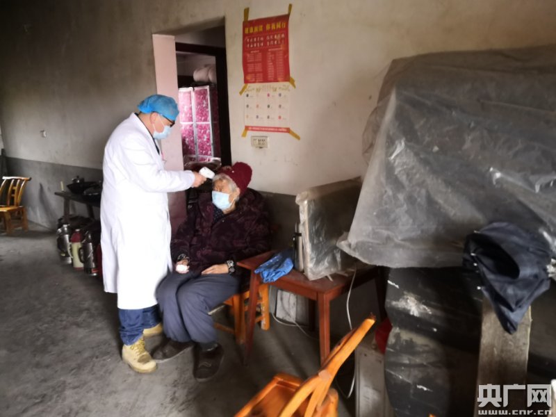 上門給村民測(cè)體溫(央廣網(wǎng)發(fā) 五峰衛(wèi)計(jì)局供圖)