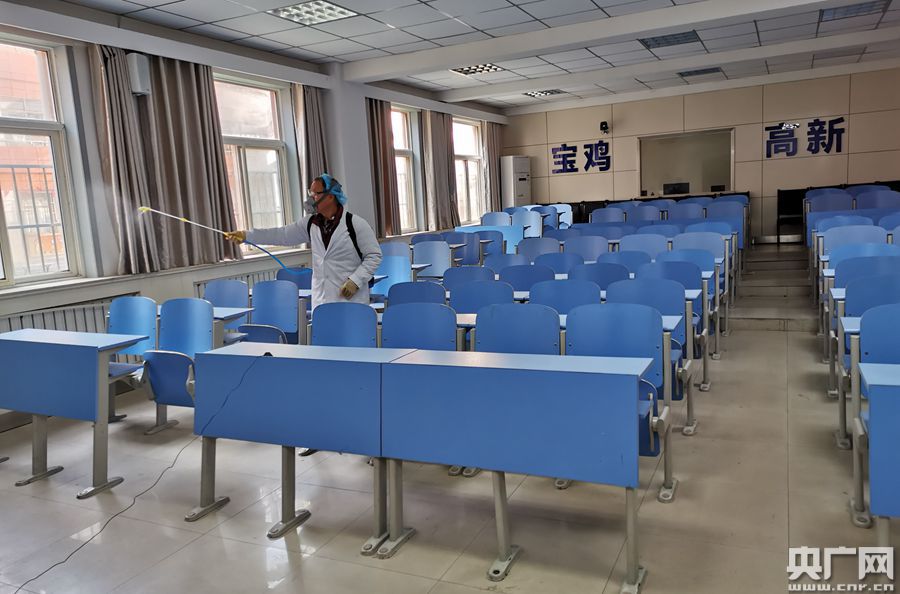 圖為寶雞市石油中學對教室進行消殺(央廣網(wǎng)記者 舒隆煥 攝)