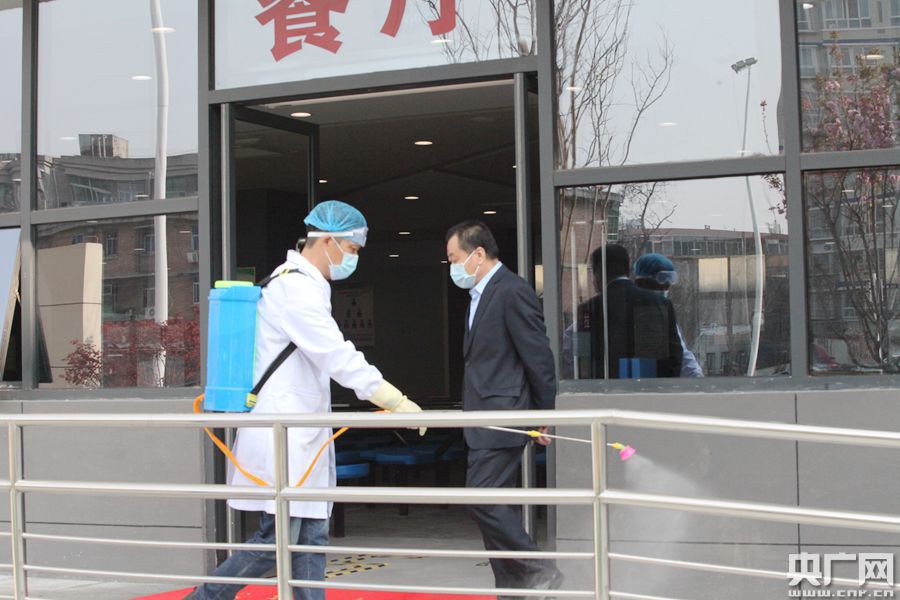 圖為西咸新區(qū)灃東新城車輛中學對學校餐廳進行消殺(央廣網(wǎng)記者 舒隆煥 攝)