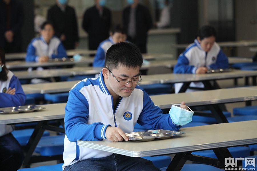 圖為西咸新區(qū)灃東新城車輛中學演練模擬學生規(guī)范就餐(央廣網(wǎng)記者 舒隆煥 攝)
