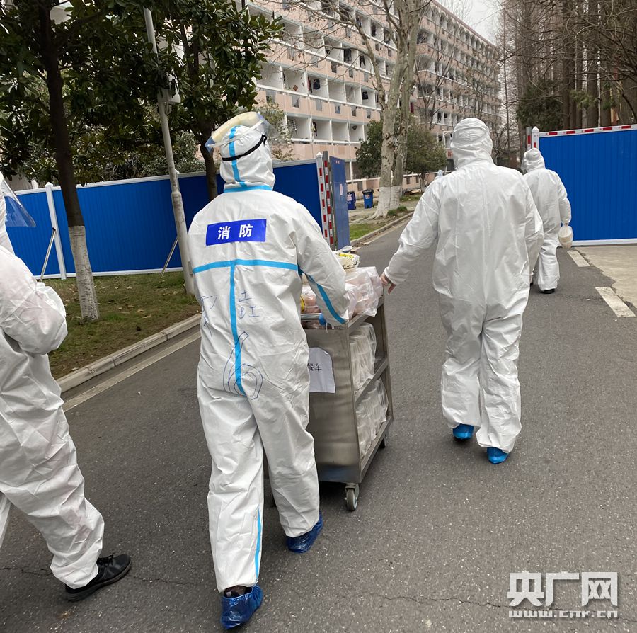 從3月9日開始,近800名隔離觀察人員陸續(xù)入住武漢船舶學(xué)院康復(fù)驛站。覃垚所在的援漢突擊大隊一分隊負(fù)責(zé)人員入住、一日三餐配送、生活物資領(lǐng)取發(fā)放和環(huán)境衛(wèi)生殺消工作。“穿著隔離服,送一趟飯菜下來就相當(dāng)于蒸了個熱桑拿,衣服全濕透!边@個由學(xué)生宿舍改建而來的康復(fù)驛站,樓高7層,沒有電梯,再加上防護(hù)服的束縛和口罩面罩導(dǎo)致的呼吸不暢,每次運(yùn)送不了多少物資。而他所在班級負(fù)責(zé)的兩棟樓有300多人,一到值班就得10多個小時連軸轉(zhuǎn),上下樓梯十多次!白疃嘁惶炫懒66層樓,感覺一天下來,工作強(qiáng)度不亞于進(jìn)行了一場高強(qiáng)度的搶險!瘪麍惛锌馈
