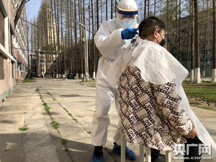 有事您說話,消防來解答!這是覃垚所在的援漢突擊大隊一分隊提出來的工作口號。3月14號,6棟的李大爺說自己將近4個月沒有理過發(fā)了,希望得到幫助。得知消息后,覃垚想起自己以前集訓(xùn)的時候給戰(zhàn)友理過發(fā),便主動請纓,拿起剪刀為他解決“頭”等大事。經(jīng)過一番修剪,李大爺頭長頭發(fā)變短了,人也精神了?粗逅睦畲鬆,覃垚想到康復(fù)驛站肯定還有很多跟大爺一樣需求的人,于是就在分隊領(lǐng)導(dǎo)的支持下成立了一個“消防義務(wù)理發(fā)小隊”,帶領(lǐng)大家為每一位有需要的隔離人員和工作人員義務(wù)理發(fā)。樓上樓下,來回奔波,躬身為每一位患者理發(fā)、幾個小時不能上廁所、手在橡膠手套的束縛下變得慘白,就是覃垚在康復(fù)驛站一天的工作常態(tài),雖然腳麻了、手酸了,他卻沒有一聲埋怨,而是堅守崗位迎難而上。