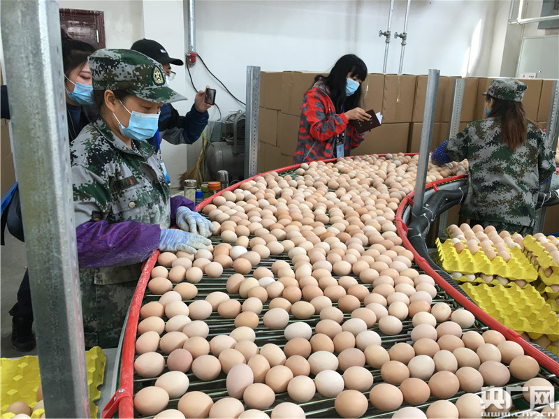 禮縣金雞產(chǎn)業(yè)園車間工人正忙著分揀雞蛋(央廣網(wǎng)記者 張磊攝)
