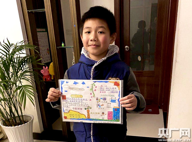 兒子劉泊遠給媽媽送上自己親手繪制的畫報(央廣網(wǎng)發(fā) 通訊員曾理 攝)
