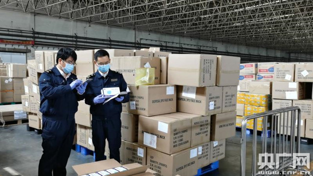 廣州白云機場海關查獲一批違規(guī)出口口罩(央廣網發(fā) 陳俐利 攝)