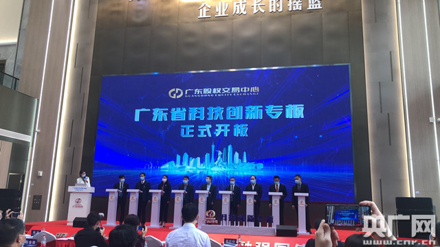 近日,“廣東省科技創(chuàng)新專板”在廣東股權(quán)交易中心展示交易大廳開板,進(jìn)一步吹響鼓勵(lì)綠色金融發(fā)展號角。廣東股權(quán)交易中心總部位于黃埔區(qū)、廣州開發(fā)區(qū)。(央廣網(wǎng)發(fā)通訊員供圖)