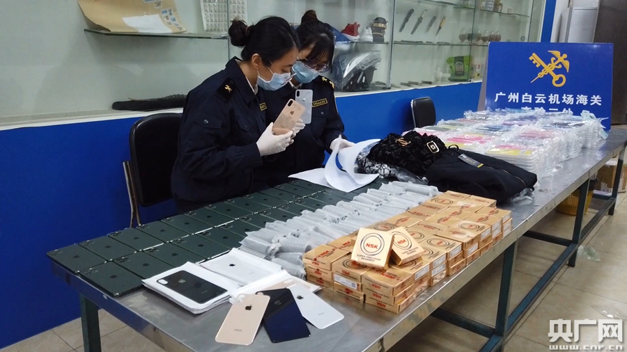 廣州海關(guān)所屬廣州白云機場海關(guān)查獲侵權(quán)手機保護(hù)套等侵權(quán)商品(央廣網(wǎng)發(fā) 關(guān)悅 攝)