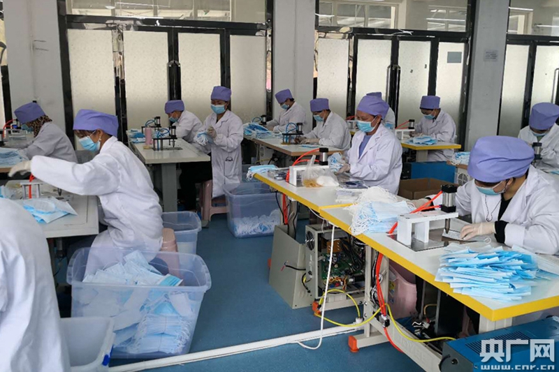 生產(chǎn)口罩的扶貧車間(央廣網(wǎng)記者 廉軍 攝)