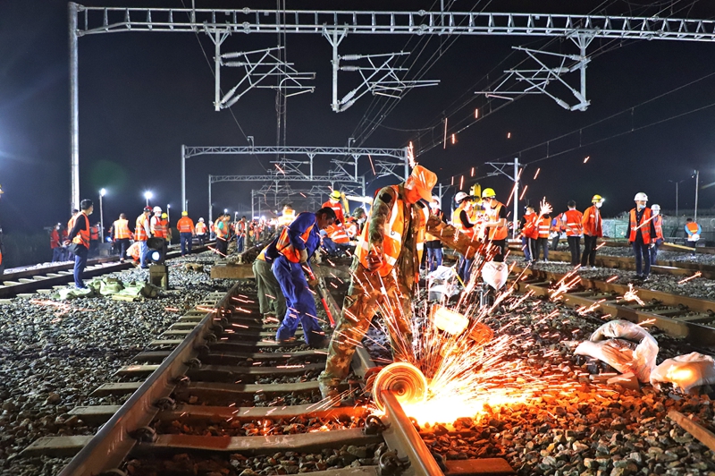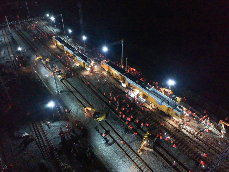 此次施工涉及道岔插鋪、大機(jī)搗固、信號(hào)軟件換裝、接觸網(wǎng)改造、站型升級(jí)等多種專業(yè)施工,參與施工人數(shù)600余人,存在施工時(shí)間緊、工程復(fù)雜、作業(yè)面狹小、拆換工序交叉、道岔縱橫推移距離長(zhǎng)等特點(diǎn)。施工中,各單位和部門密切協(xié)同配合,確保施工環(huán)節(jié)的全過程控制,分工到組、責(zé)任到崗、精確到點(diǎn),實(shí)現(xiàn)安全正點(diǎn)目標(biāo)。該站改施工預(yù)計(jì)5月底完工。