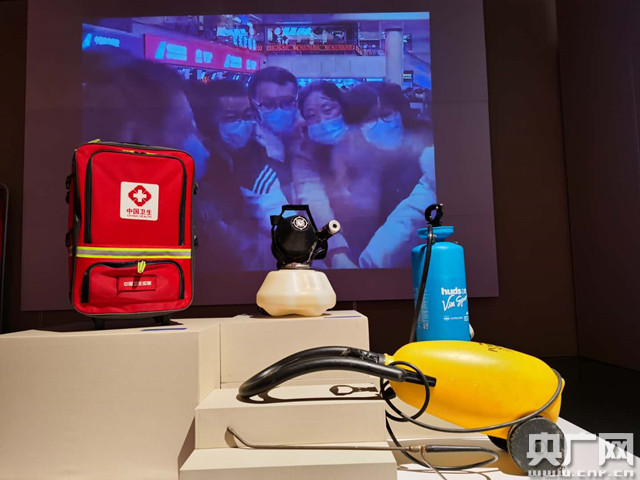 抗疫紀(jì)實(shí)展的部分展品(央廣網(wǎng)記者 張靜 攝)